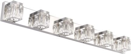 Ralbay LED Modern Bathroom Vanity Lights 6 Lights Crystal Glass Stainless Steel Bathroom Vanity Lights Fixtures Over Mirror LED Modern Crystal Glass Vanity Lights