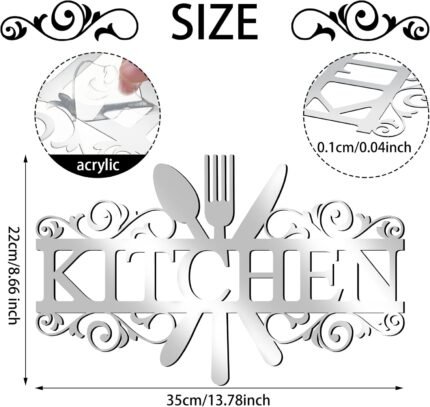Spakon Wall Stickers for Kitchen Acrylic Decals Kitchen Wall Decorations 3D Mirror Decor for Dining Room Home(Silver)