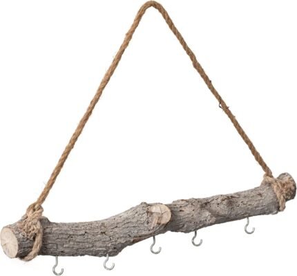 Uniquewise 19-inch Natural Decorative Wooden Log Hanging Farmhouse Wall Decor with 5 Hooks for Jewlery Keys Hats and Wall Accessories Perfect for Entryway Living Room Kitchen Hallways and Dining Area