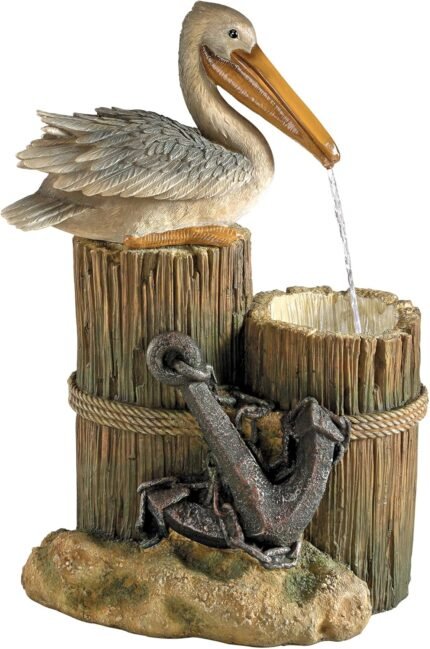 Coastal Decor Water Fountain with LED Light – Pelican’s Seashore Roost Garden Decor Fountain – Outdoor Water Feature, Full Color