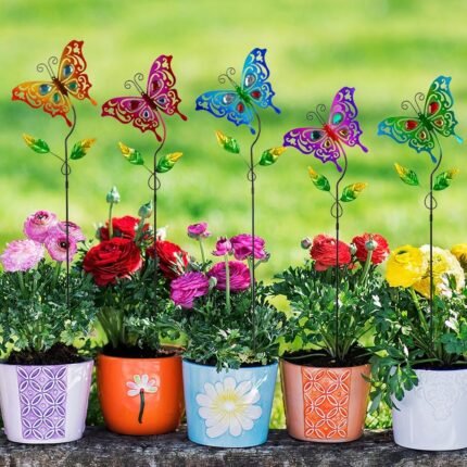 Butterfly Garden Decor for Outside,Colourful Butterfly Decorations Garden Kit 5 Pcs with Gems,Metal Yard Art Outdoor Garden Stakes Decorative Patio Home Decor