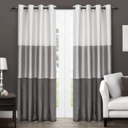 EXCLUSIVE HOME Chateau Striped Faux Silk Grommet Top Curtain Panel Pair, 54″x96″, Black Pearl