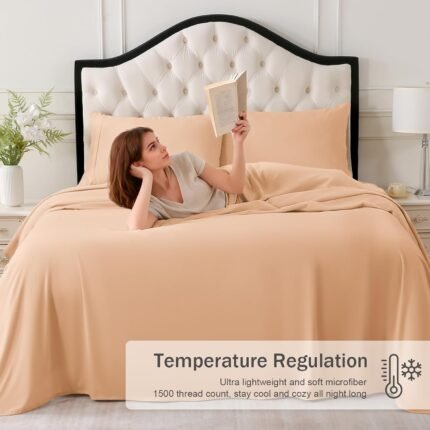 MICORAL Queen Bed Sheets Set, Soft Breathable Bedding Sheet Set, Sheets Set with 16″ Deep Pocket Design (4 Pieces, Queen, Pearl Pink)