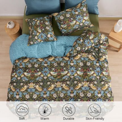 PHF Ultra Soft Floral Duvet Cover Queen Size, Revisible Boho Printed Vintage Bedding Set 3 Pieces, Comfy Durable Morris Garden Duvet Cover Set with 2 Pillow Shams, Zipper Closure and 8 Ties, 90″x90″