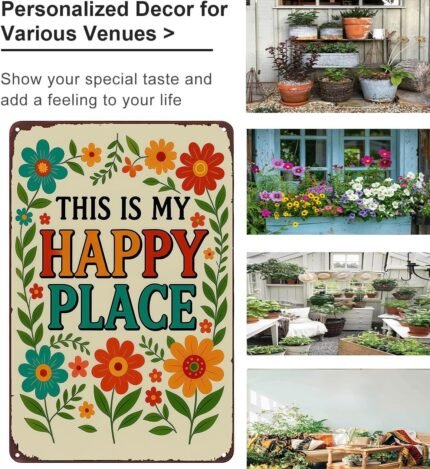 Funnysign Garden Gifts This Is My Happy Place Vintage Tin Sign for Home Garden Patio Yard Decor 8 X 12 Inch(3981)