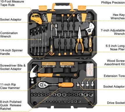 DEKOPRO 150 Piece Tool Set, General Household Hand Tool Kit, Home Repair Tool Kit with Plastic Toolbox Storage Case for DIY Project, Home Maintenance