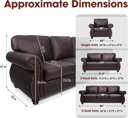 Living Room Furniture Sets,Sofa Sets and Couch Sets for Living Room,Mid-Century Vintage Sofa Couches with Rivet Design (Brown, 2 Single+3 Seater)