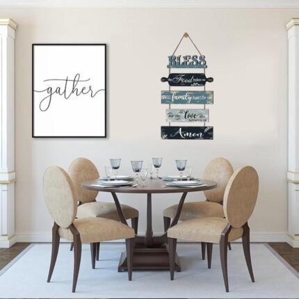 Buecasa Bless the Food Before Us Farmhouse Kitchen Wall Decor – Dining Room Decorations Collage Wall Art in Teal Blue Color – Wooden Rustic 5pcs Roped Wall Sign 13×24 Inches Vertical