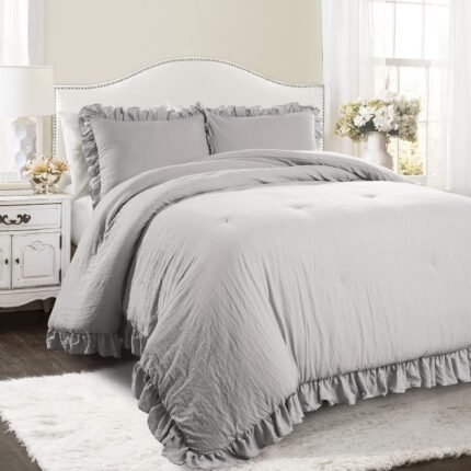 Lush Decor Reyna Ruffle Comforter Set, King, Light Grey