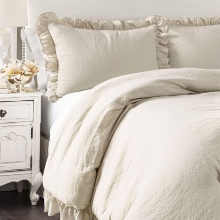 Lush Decor Reyna Ruffle Comforter Set – 3 Piece Cozy Ruffled Bedding Set – Timeless Elegance and Comfort for Bedroom – King, White