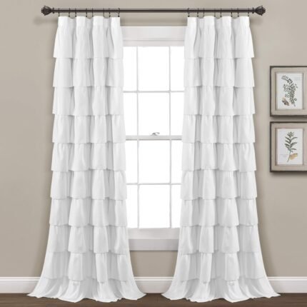 Lush Decor Ruffle Window Curtain – Vintage Chic Farmhouse Style Panel for Living, Dining Room, Bedroom (Single), 50”W x 84″L, White