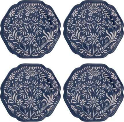 Karma, 8.75 inches Melamine Salad Plates Set of 4, Reusable Dishwasher Safe Plates for Outdoor and Indoor, Folklore Birds