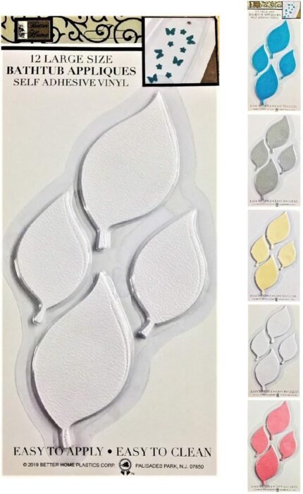 Better Home 12 Leafs Shape Bathtub/Shower Appliques Safety Non Slip Treads, Latest Decoration Colors (White)