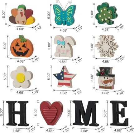 Glitzhome Interchangeable Home Table Signs with 13 Pcs Seasonal Icons, Wooden Changeable Home Sign for Holiday Decor, HOME Letter Sign Ornaments Set Interchangeable Holiday Decorative Shelf Blocks