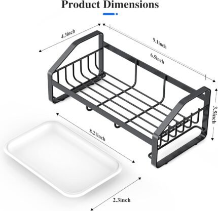 Sink Caddy, Sponge Holder for Kitchen and Bathroom, 304 Stainless Steel Countertop Organizer Soap Tray With Removable Drain Tray – Black Length Version