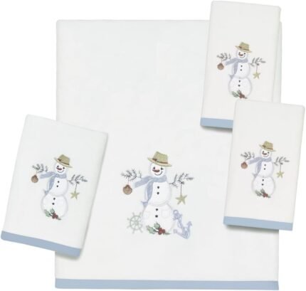 Avanti Linens – Hand Towel, Soft Cotton Velour, Embroidered, Festive Home Decor (Coastal Snowman Collection)