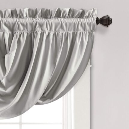 Lush Decor Lucia Elegant Waterfall Valance for Living Room Kitchen, and Bedroom, Soft Polyester Window Curtain, Single -Light Gray (42″W x 18″L)