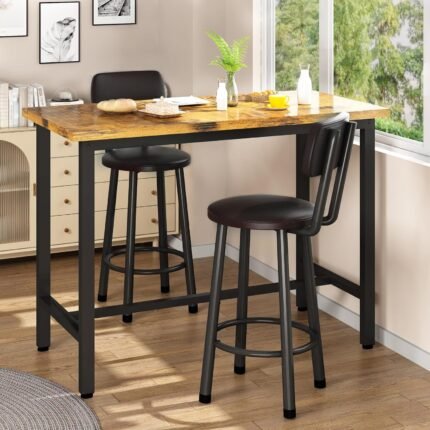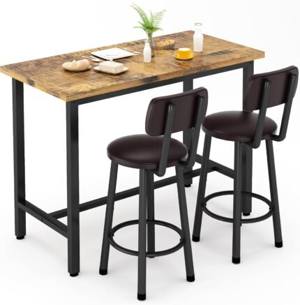Recaceik 3 Piece Pub Dining Set, Modern bar Table and Stools for 2 Kitchen Counter Height Wood Top Bistro Easy Assemble for Breakfast Nook Living Room Small Space Restaurant, Rustic Brown 39”