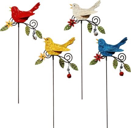 KEDONCHEN.4 Pack Metal Bird Decorative Garden Stakes, Spring Garden Decor,Indoor Outdoor Lawn Pathway Patio Ornaments, 14.2 Inch Outdoor Metal Garden Decor Shaking Head Yard Art …
