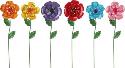 hogardeck Garden Decor for Outside, Set of 6 Metal Flowers Decorative Garden Stakes for Spring Decor, Yard Art Garden Decorations for Outdoor Lawn Porch Pathway Patio (Multi-Color)