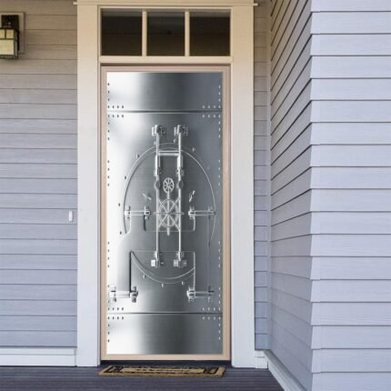 artfanke 3D Door Sticker Peel and Stick 30.3″x78.7″- Self-Adhesive Wall Murals Wallpaper-Bank Vault Door Decal for Bedroom Decor(2 Sheets/Set)