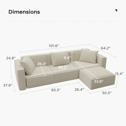 Acanva Luxury Modular Sectional Living Room Sofa Set, Modern Minimalist Style Couch with Ottoman and Chaise, L-Shape, Linen-Like Cream