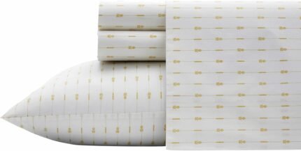 Tommy Bahama – Queen Sheets, Cotton Percale Bedding Set, Crisp & Cool, Stylish Bedding Set (Pineapple Pinstripe Yellow, Queen)