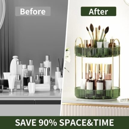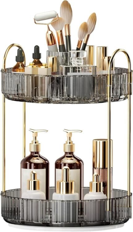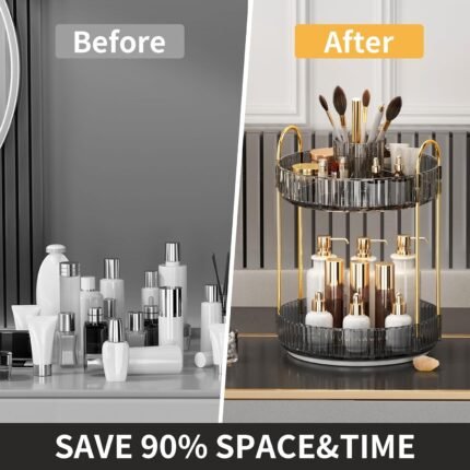 360° Rotating Makeup Organizer, Large-Capacity Skincare Make Up Storage 2 Tier Perfume Organizers Cosmetic Dresser Organizer with Makeup Brush Holder, Fits Bedroom, Bathroom, Vanity Shelf Countertop