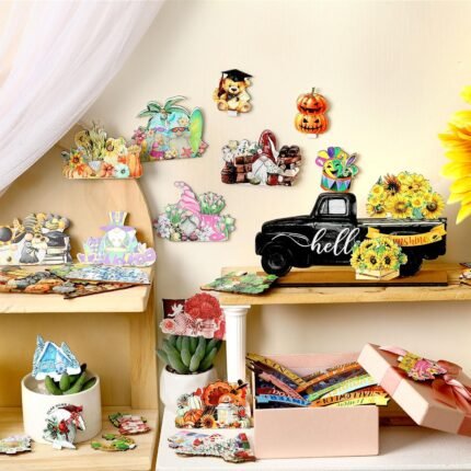34 Pcs Small Interchangeable Truck Decor Holiday Seasonal Sign Fall Halloween Tier Tray Decoration Farmhouse Rustic Wooden Home Office Welcome Ornament Gift