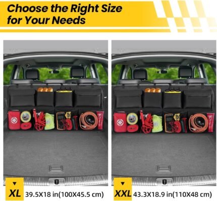 Car Backseat Hanging Trunk Organizer Extra-Long, 30% More Storage, 8 Large Pockets Car Storage Bag for SUV, Truck, Van – Super Capacity SUV Hanging Organizer for a Neat & Clutter-Free Space – Black