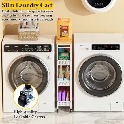 SPACEKEEPER Slim Rolling Storage Cart, 3 Tier Bathroom Storage Organizer Laundry Room Utility Cart Mobile Shelving Unit, Multi-Purpose for Kitchen Office Bathroom Laundry Narrow Places, White