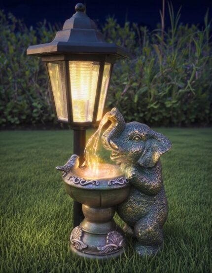 Elephant Solar Garden Statue Outdoor Watering Lights Decor, 12″H Large Lawn Ornaments, Animal Yard Decorations for Patio Porch Backyard Balcony, Birthday Gifts for Women