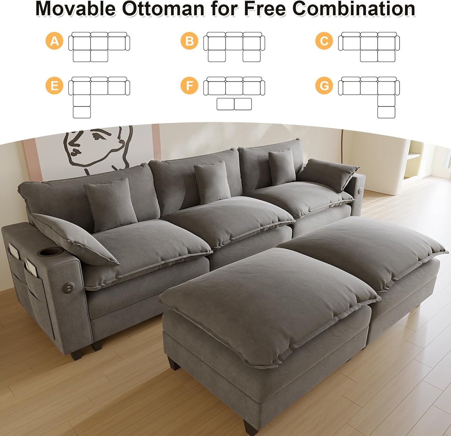 8 reviews for 116″ U Shaped Sectional Couch, Chenille Sectional Couches for Living Room, Modular Cloud Couch with Movable Ottoman, Modern Cloud Sofa with Charging Station, Cup Holder, Side Pocket, Grey