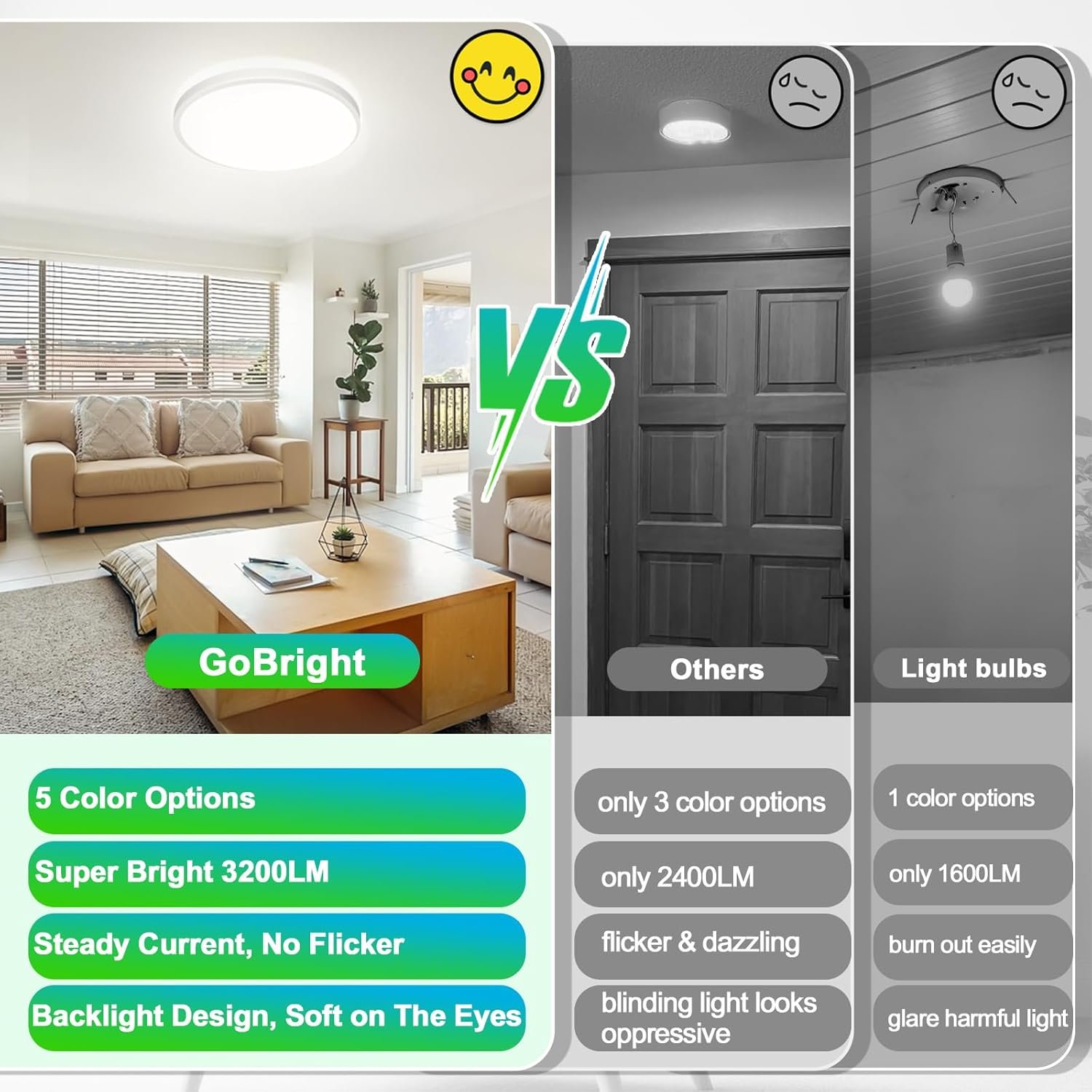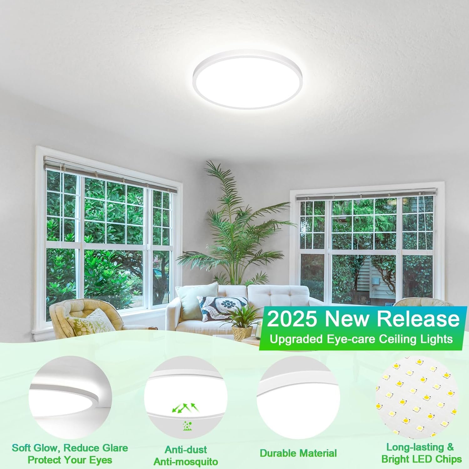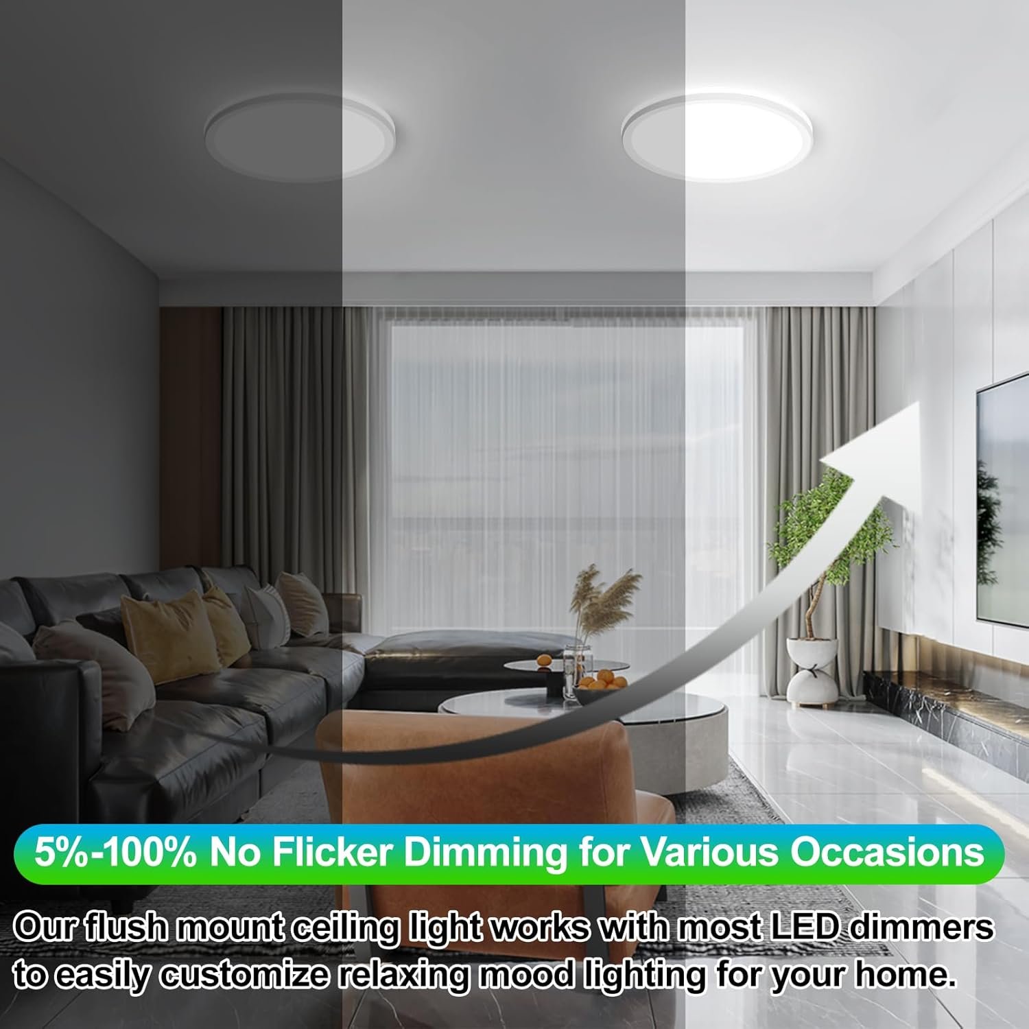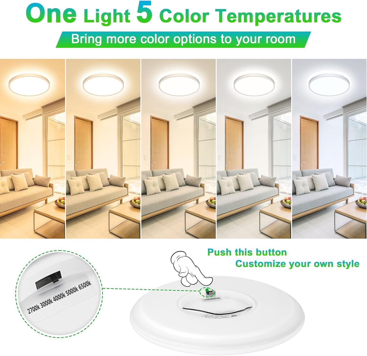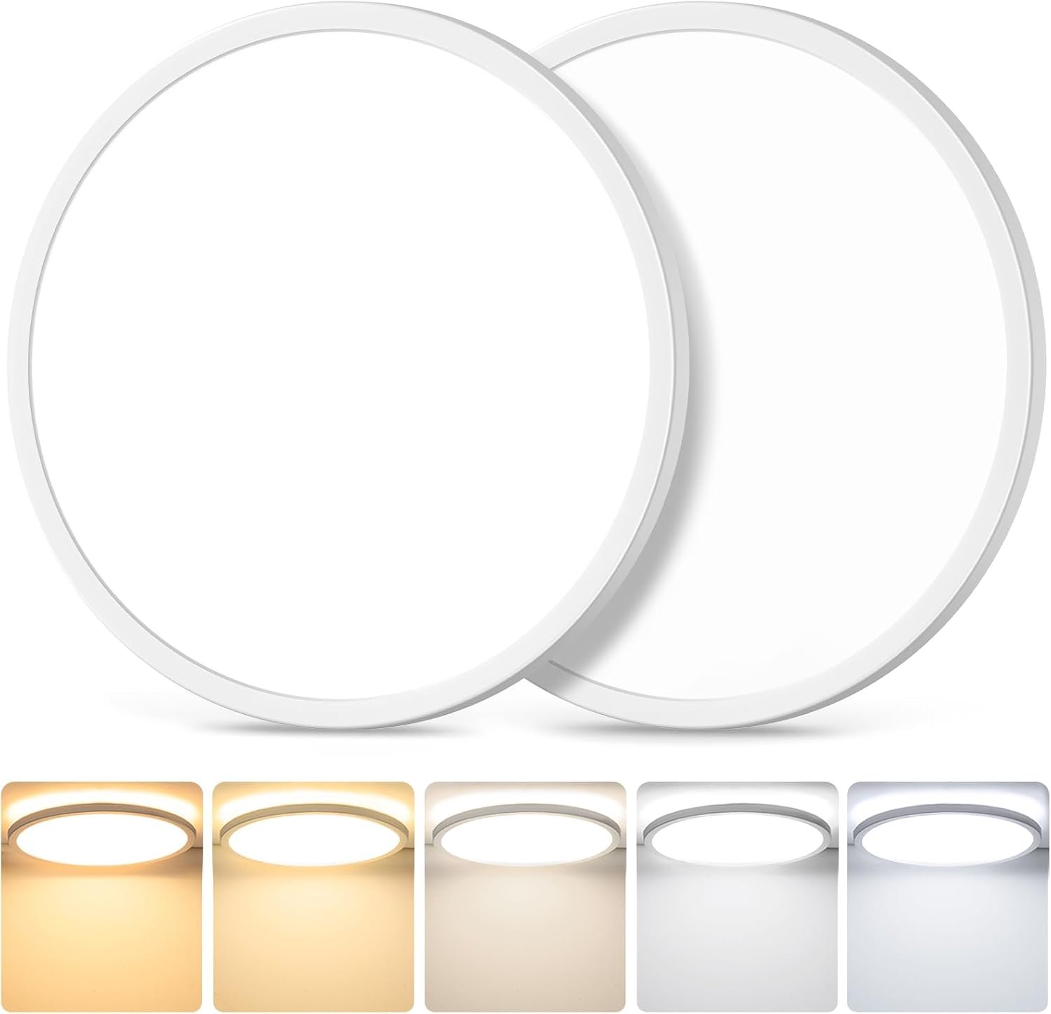 8 reviews for 12 Inch 3200LM Dimmable LED Flush Mount Ceiling Lights, 2-Pack 24W Ceiling Light Fixtures, 2700K/3000K/4000K/5000K/6500K 5 Color in One, Ultra Thin White Round Lamps for Kitchen, Bedroom, Hallway