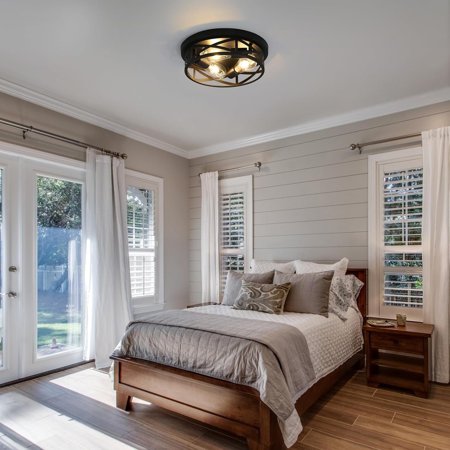 Beautiful fixture. Couldn’t get it snug against the ceiling. They give a couple of nuts to use as spacers, but it still doesn’t sit right. There’s a small gap but most people won’t notice. I wouldn’t purchase again because of this, but I will keep it because I really do love the style and finish.
