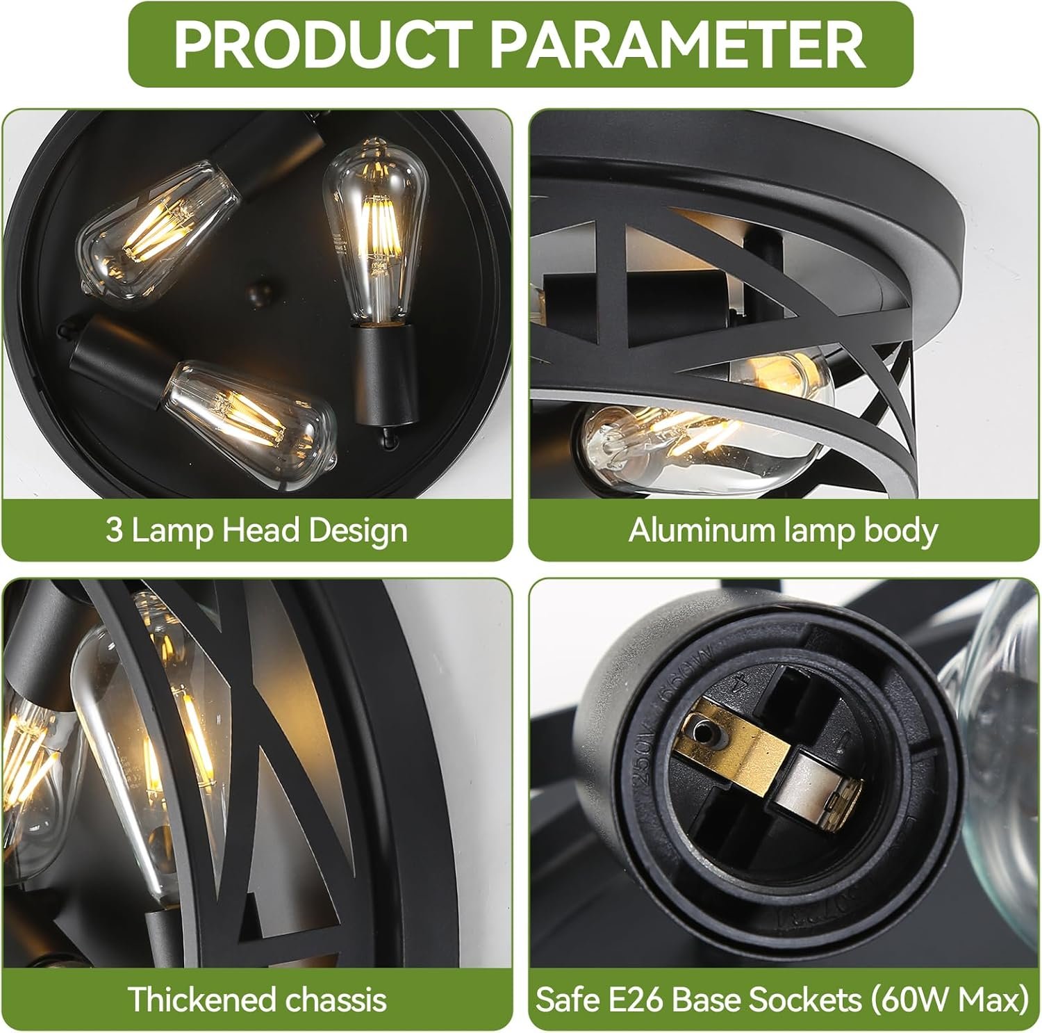 8 reviews for 13 inch Black Flush Mount Ceiling Light Fixtures,3-Light Modern Hallway Light Fixtures Ceiling, Black Lights Fixture Ceiling Mount for Farmhouse,Kitchen, Bedroom (1 Pack)