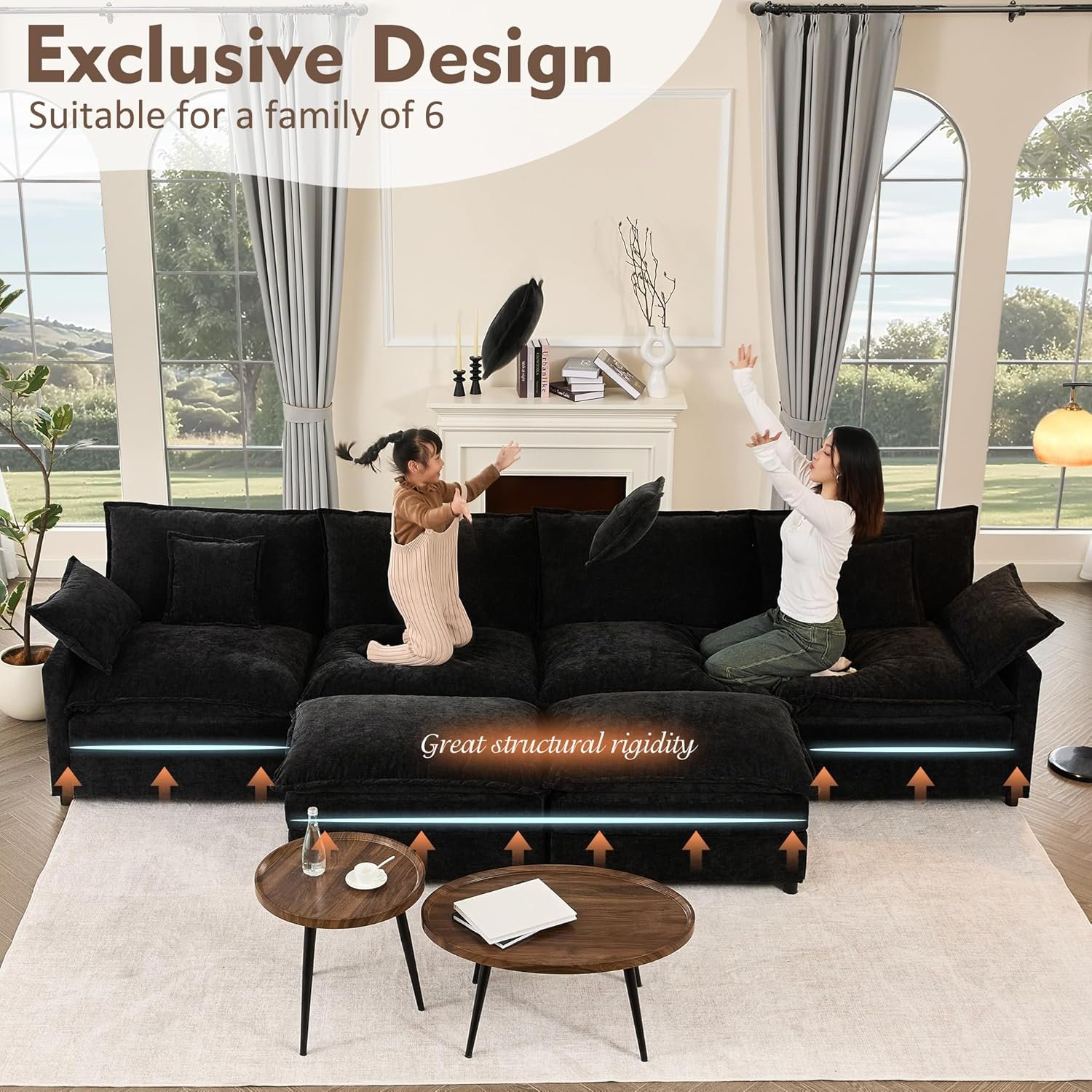 10 reviews for 142.5″ U Shaped Couch, Modular Sectional Sofa, 3-Seater Comfy Cloud Couch with Movable Ottoman, Deep Seat Couches for Living Room, Chenille, Black
