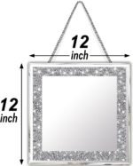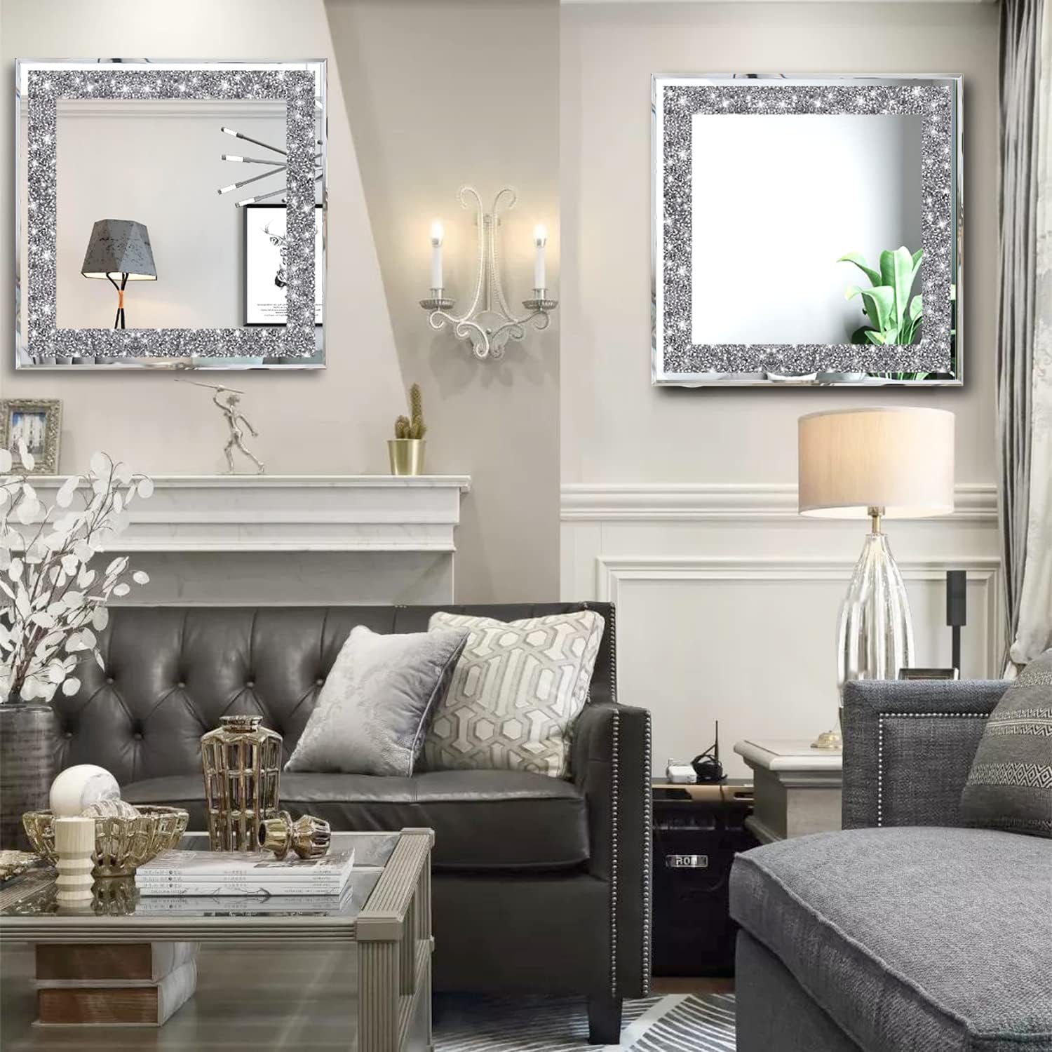 2 Piece Wall Mirrors, Crush Diamond Mirrors Decor, Silver Decorative for Living Room Bedroom, Bathroom. (12”x12”)