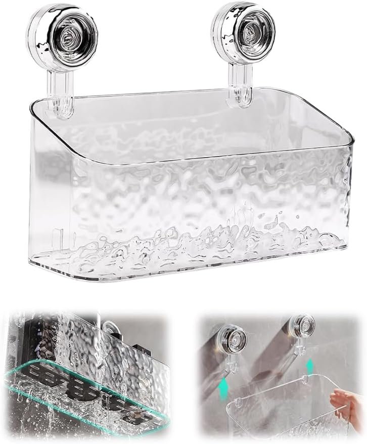 2 reviews for 2025 New Corrugated Suction Cup Storage Holder, Light Luxury Style Glacier Pattern Suction Cup Shelf, No Drill Clear Wall Caddy Multifunctional Storage Rack Holder for Bathroom (White(Large))