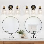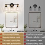8 reviews for 2025 Upgrade Bathroom Light Fixtures, 3-Light Coastal Vanity Lights with Crystal Glass Shade, Black Bathroom Wall Lamp for Mirror Kitchen Hallway Cabinet
