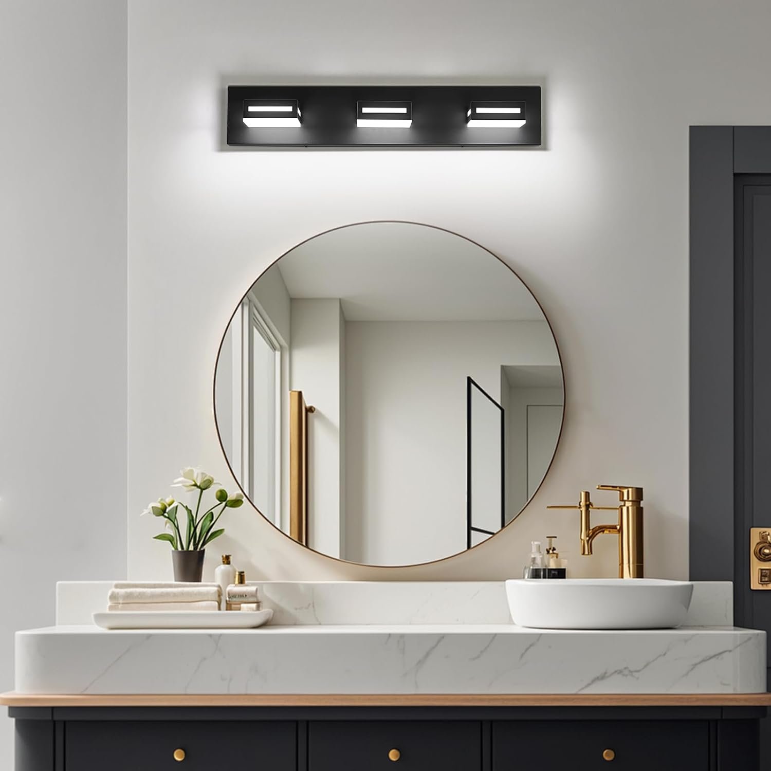 13 reviews for 24-Inch 3-Light LED Modern Black Bathroom Vanity Light Fixtures Over Mirror, Bathroom Lighting Fixtures with Cool White 6000K, Vanity Wall Lights for Bath Restroom Powder Room