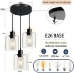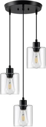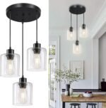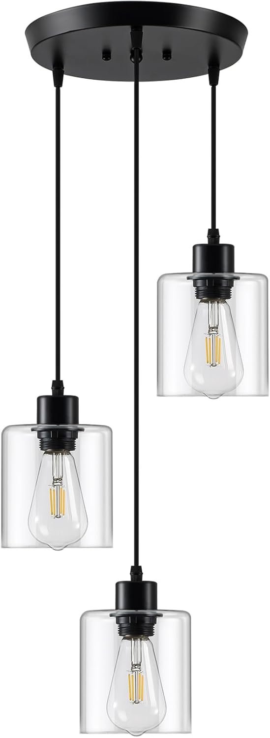 11 reviews for 3-Lights Pendant Light Fixture, Hanging Light Fixture Kitchen Island, Black Pendant Lighting for Kitchen Bedroom Hallway, Dining Room Light Fixtures, E26 Base, Clear Glass Shade