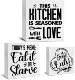 2 reviews for 3 Pcs Kitchen Wood Signs Decor Funny Kitchen Wood Block Signs Kitchen Good Eats Wooden Box Signs Kitchen Decorations for Tiered Tray Desk Table Shelf