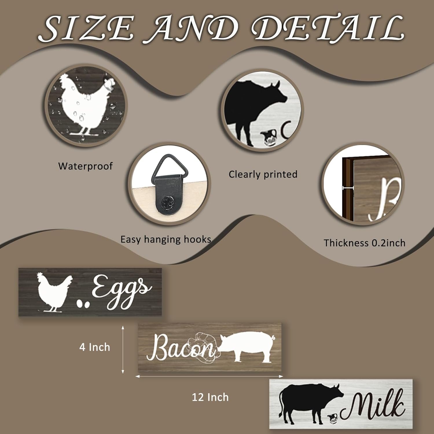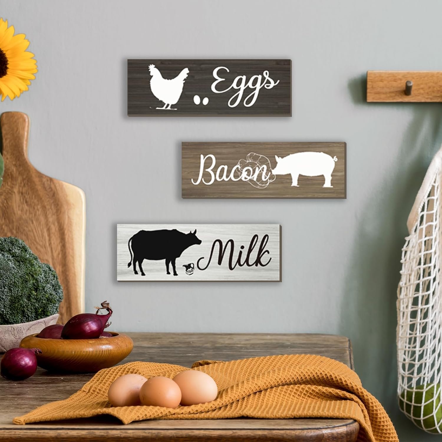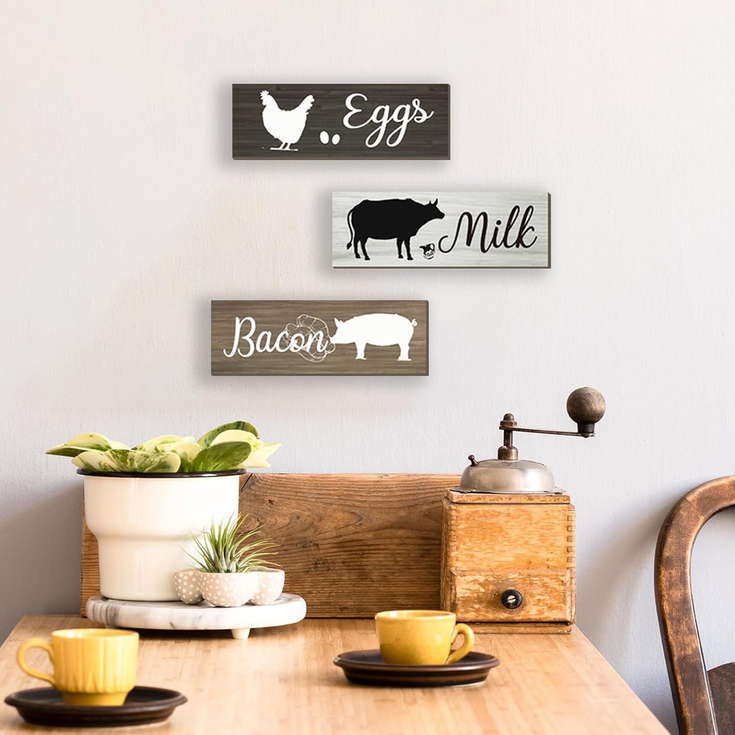 3 Pieces Farmhouse Kitchen Wall Decor Cow Hen and Pig Kitchen Decor Rustic Wooden Kitchen Signs Country Wall Decorations for Kitchen Home Dining Room Wall Decor, 12X4 Inch