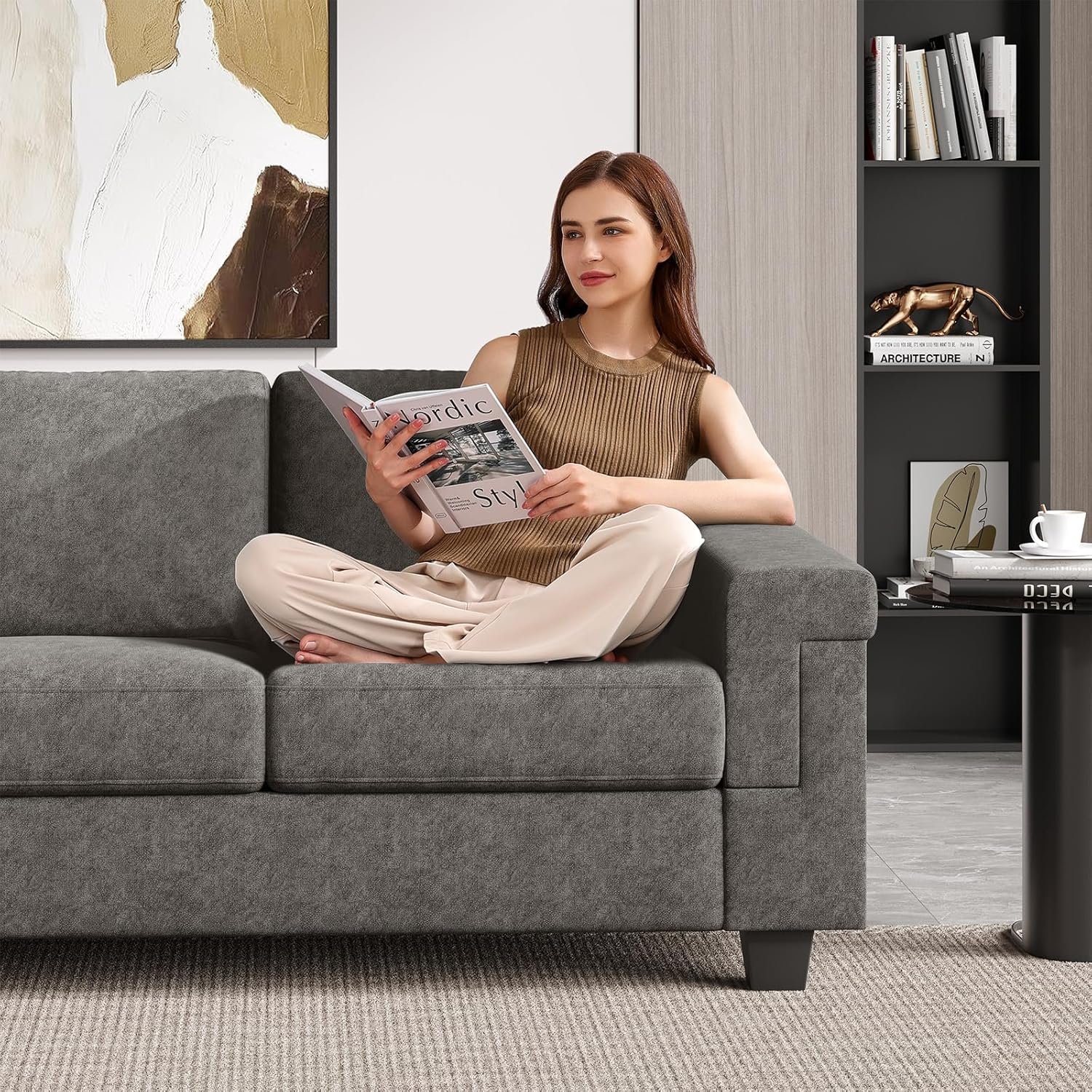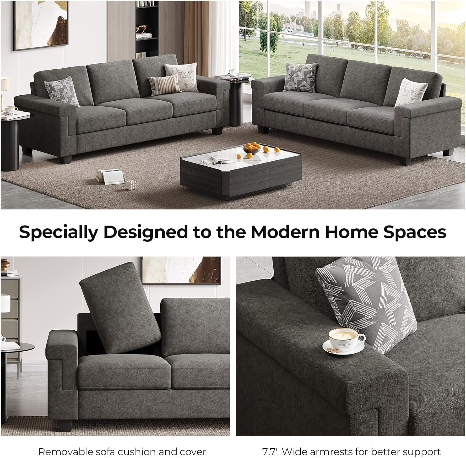 8 reviews for 3 Seater Sofa Couch with Deep Seat, 90″ Modern Upholstered Sofa with Armrests, Easy Installation, Comfy Couches for Living Room, Apartment, Gray