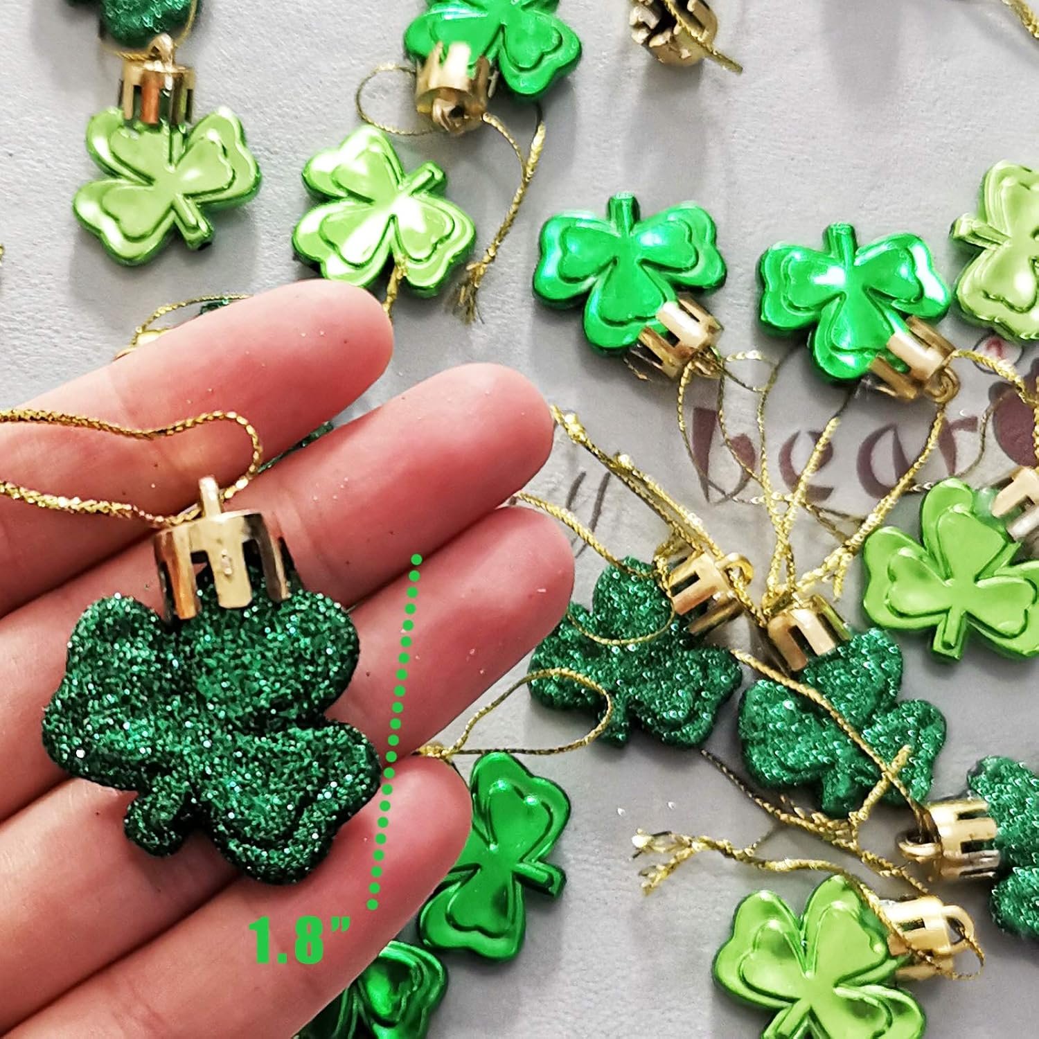 Be the first to review “30 PCS St. Patrick’s Day Shamrocks Ornament Set, Good Luck Clover Hanging Bauble Trefoil Pendant Decoration for Keyring Tree Shelf Home Decor Irish Festival, 3 Style” Cancel reply