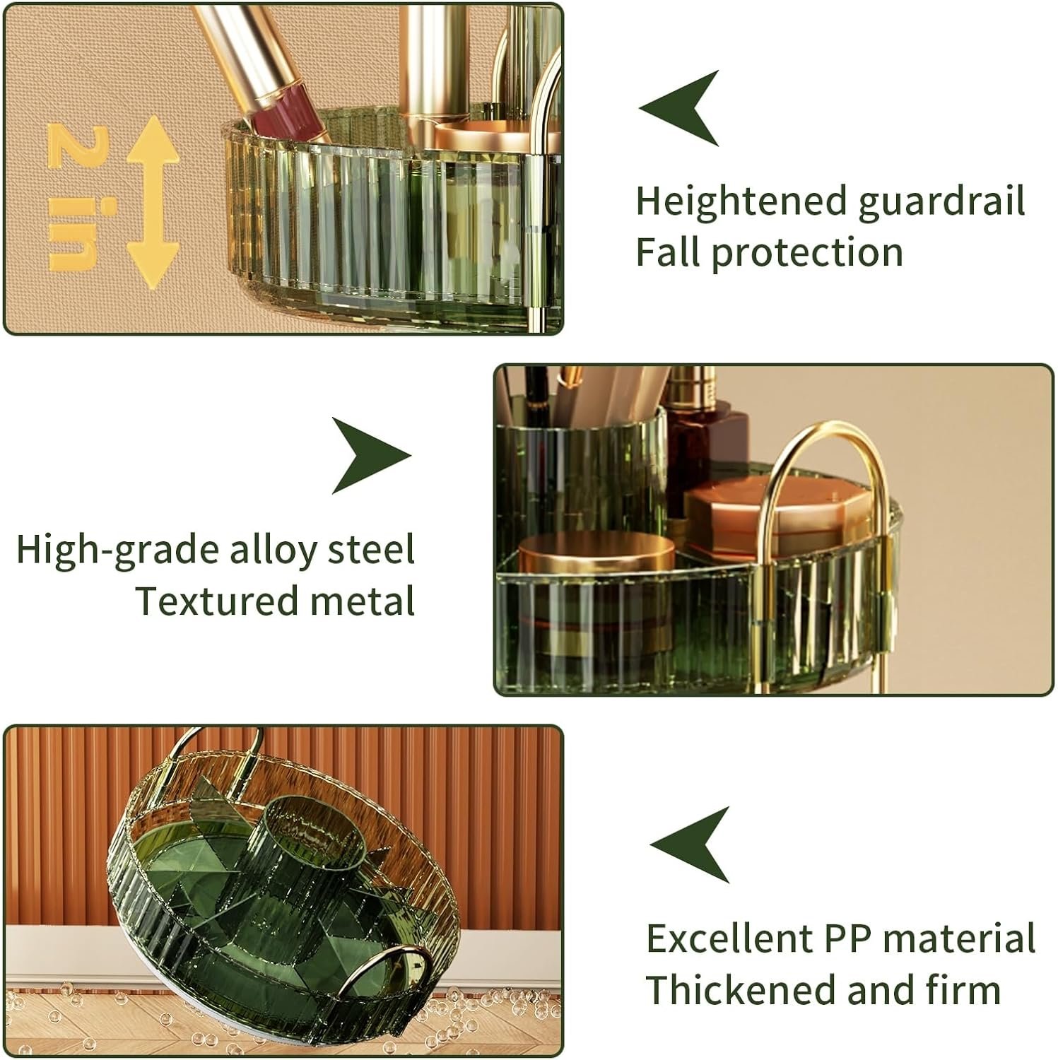 Super useful and beautiful! I can easily see all my products without making a mess. It rotates smoothly and feels sturdy. Adds a chic touch to my vanity.