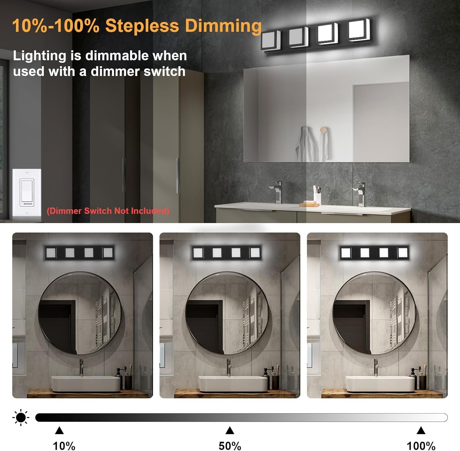 8 reviews for 4-Light Bathroom Lighting Fixtures Over Mirror (5CCT, Dimmable), Black Led Modern Vanity Light for Bathroom (3000K/3500K/4000K/5000K/6000K)