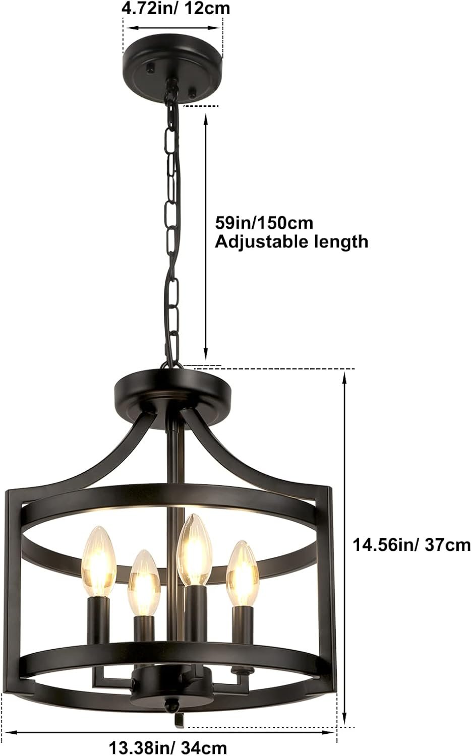 13 reviews for 4-Light Farmhouse Chandelier, Modern Hanging Pendant Lighting, Convertible Semi Flush Mount Ceiling Light Fixture Rustic Vintage Black Chandeliers for Dining Room Kitchen Foyer Entryway