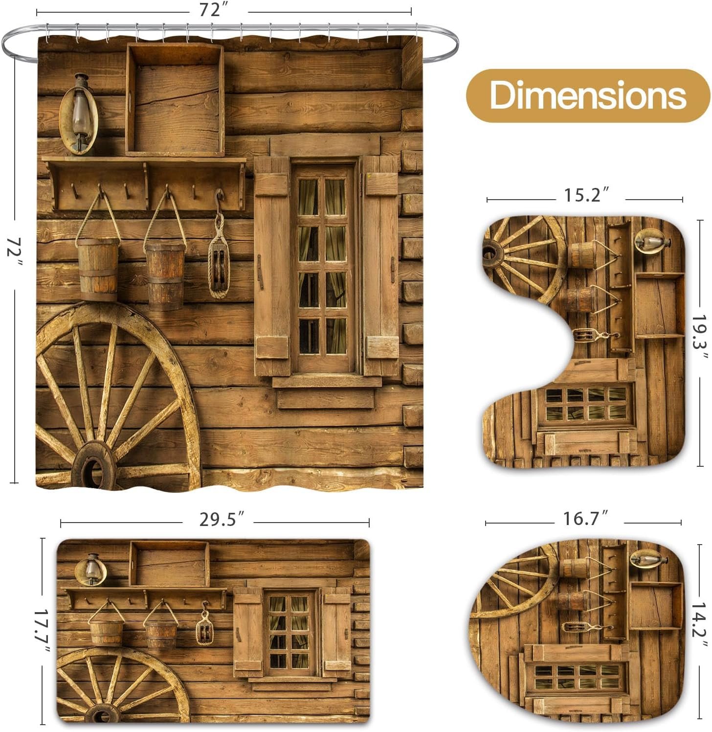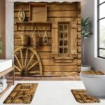 8 reviews for 4 Pcs Rustic Wooden Farmhouse Shower Curtain Set with Non-Slip Rugs, Toilet Lid Cover and Bath Mat, Farmhouse Bathroom Decor Set with Shower Curtain and Rugs(Hooks Not Included)